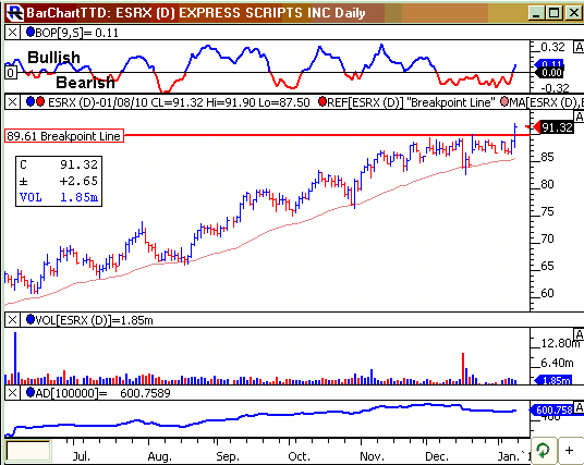 ESRX's daily chart shows the stock moving higher and holding nicely over its rising 50-day moving average line. That technical pattern is very impressive.