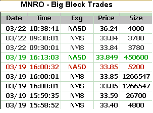 Today, a key block traded took place in the morning when 450,600 shares crossed at $33.84. That was off slightly from the prior block of $33.85.