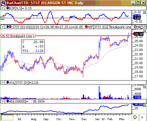 TTD often suggests using stop buy orders to enter. It is very important to buy a breakout stock as close as possible to the breakpoint. The idea is to get "elbow room" if the stock should follow through to the upside. This is very important in being successful in making big money with breakout stocks.