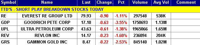 The TTD report also contains stocks to short as breakdown plays and as bargain (swing trade) shorts.