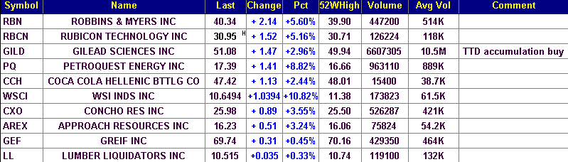 TTD also presents a "Breakout Watch List" that is up dated daily. This list consists of key stocks in position to breakout. A close watch of this list can put you in the stock just as it breaks out.
