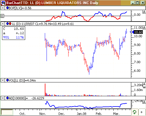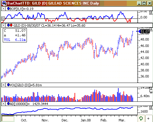 The TTD momentum indicator (top of the chart) is bullish. The accumulation - distribution line (bottom of chart) is in a strong up trend. It broke out to a new peak. That was a good advance signal that the price of the stock would do the same. So far, so good.