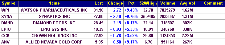 SYNA's stock rose sharply in the morning. It trended sideways most of the rest of the day giving some ground in the final hour.