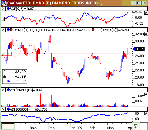 The accumulation - distribution line (bottom of chart) is in a strong up trend. That indicates that there is strong buying in the stock and little selling pressure.