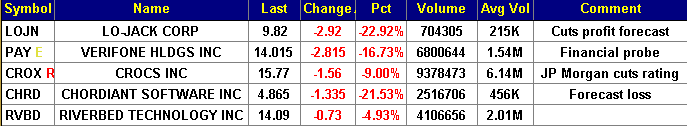 Bear Side - Small list of breakdown stocks, but some interesting plays. Bears be selective favoring stocks with fundamental problems.