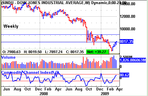 The accumulation - distribution line (bottom of chart) lags a bit.