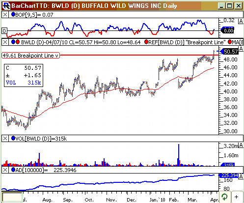 TTD also presents a "Breakout Watch List" that is up dated daily. This list consists of key stocks in position to breakout. A close watch of this list can put you in the stock just as it breaks out. A good idea is to study the list and be ready to move into a stock quickly as it hits its breakpoint.