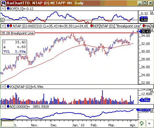 TTD often suggests using stop buy orders to enter. It is very important to buy a breakout stock as close as possible to the breakpoint. The idea is to get "elbow room" if the stock should follow through to the upside. This is very important in being successful in making big money with breakout stocks.