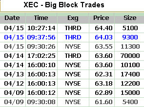 A key trade today was a big block of 5,100 shares that crossed at $64.40. That was up sharply from the prior block trade at $64.03. The tape action today would indicate aggressive institutional buying interest.