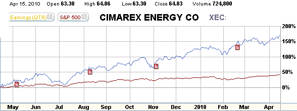 XEC's 12-month performance chart shows the stock appreciating 170% versus a 45% gain for the S&P 500 index.