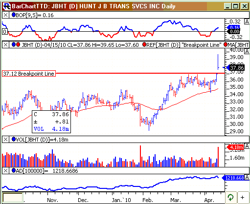 TTD also presents a "Breakout Watch List" that is up dated daily. This list consists of key stocks in position to breakout. A close watch of this list can put you in the stock just as it breaks out. A good idea is to study the list and be ready to move into a stock quickly as it hits its breakpoint.