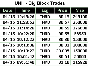 UNH's stock moved lower in the morning. It touched an intraday low of 30.08. It then lifted in the afternoon as the stock market rallied modestly.
