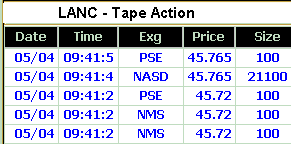 The past six years, LANC traded between roughly 30 and 45. Today's breakout to a new all-time high is very bullish. That means there is no overhead resistance - others who bought at a higher price that may want to sell to breakeven.