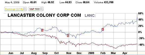 TTD's performance chart shows LANC appreciating 48% the past 12 months. That