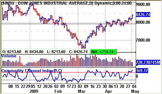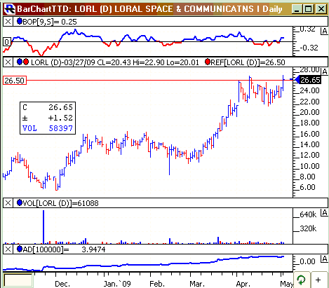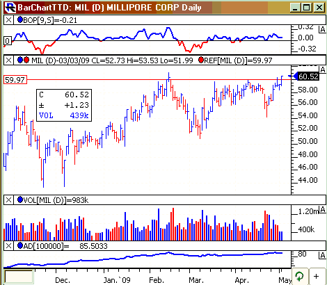 The accumulation - distribution line (bottom of chart) is in an overall up trend.