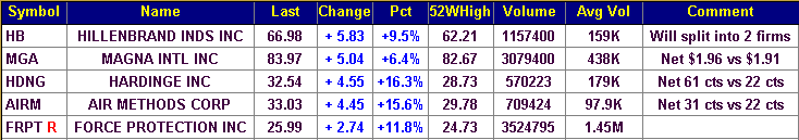 HDNG, based in Elmira, N.Y., makes industrial machine tools for small and mid-sized shops that turn out machined parts for the automotive, medical equipment, and farm equipment industries. Annual revenues: $327 million. HDNG breaks out strongly today from a seven-week, cup-and-handle base after reporting strong earnings for the first quarter. Volume is running at four times normal at 704,057. Its average daily volume is 179,000 shares.