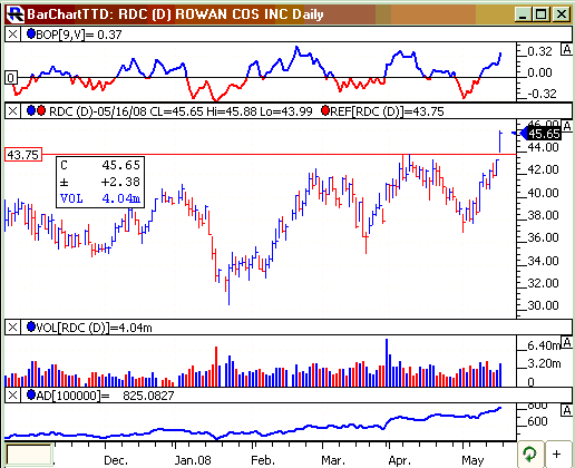 Technically, ESV has a lot going for it. The stock is part of one of the strongest market sectors - oil. The TTD momentum indicator (top of the chart) is strongly bullish.