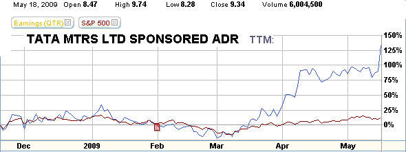 TTM, based in India, is India's largest automobile maker. Annual revenues: $8.1 billion. TTM's stock breaks out from a seven-week base today on big volume. The stock is a turnaround play. It was $20 back in 2007, fell to 4 and then rallied from to 8 to set up its base. The company has been negotiating with the Indian government on TTM's plans to produce an eco-car.