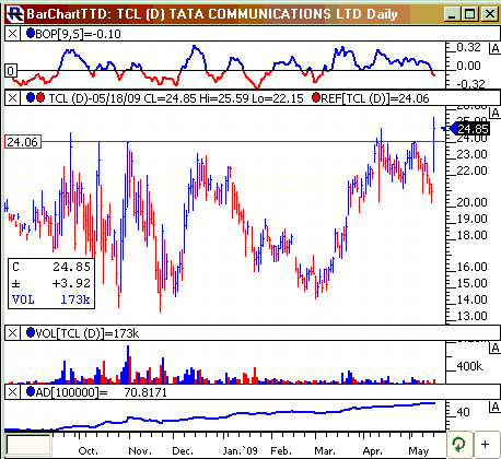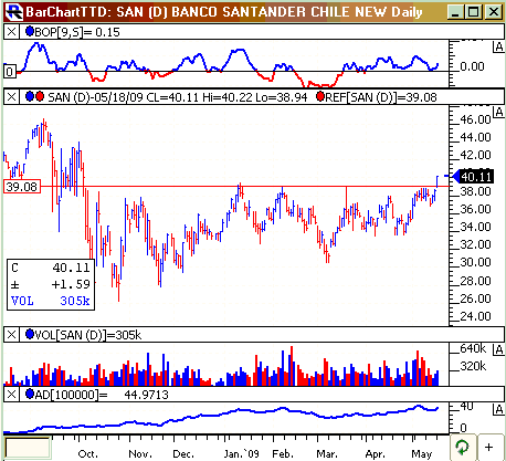 The stock's Accumulation - distribution line (bottom of chart) is in a strong up trend. It has broken out to the upside to confirm the same action in the price of the stock.